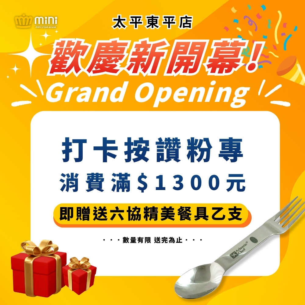2.打卡按讚太平東平店FB粉絲專頁,並來店內用排餐,消費滿$1300元,即可兌換 六協精美餐具乙支,每桌限兌換乙份。