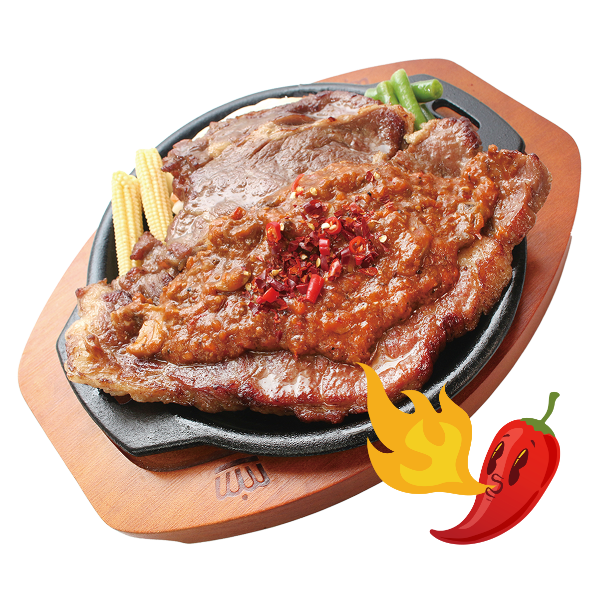 採用牛肩胛部位,含有豐富油筋,口感較有嚼勁,適合煎烤,搭配獨創麻辣蘑菇醬,風味獨特,份量十足。