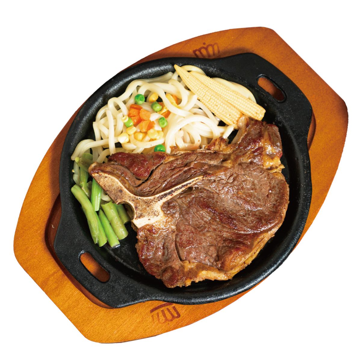 採用牛隻帶骨前腰脊肉,因肉塊中間有T字形骨頭,故名為T-Bone Steak,中文則採丁字形象,名為丁骨牛排。 丁骨牛排的兩邊為不同肉質,一邊是有嚼勁的紐約客,一邊是軟嫩的菲力,一份牛排,兩種享受,正是丁骨牛排最誘人的滋味。